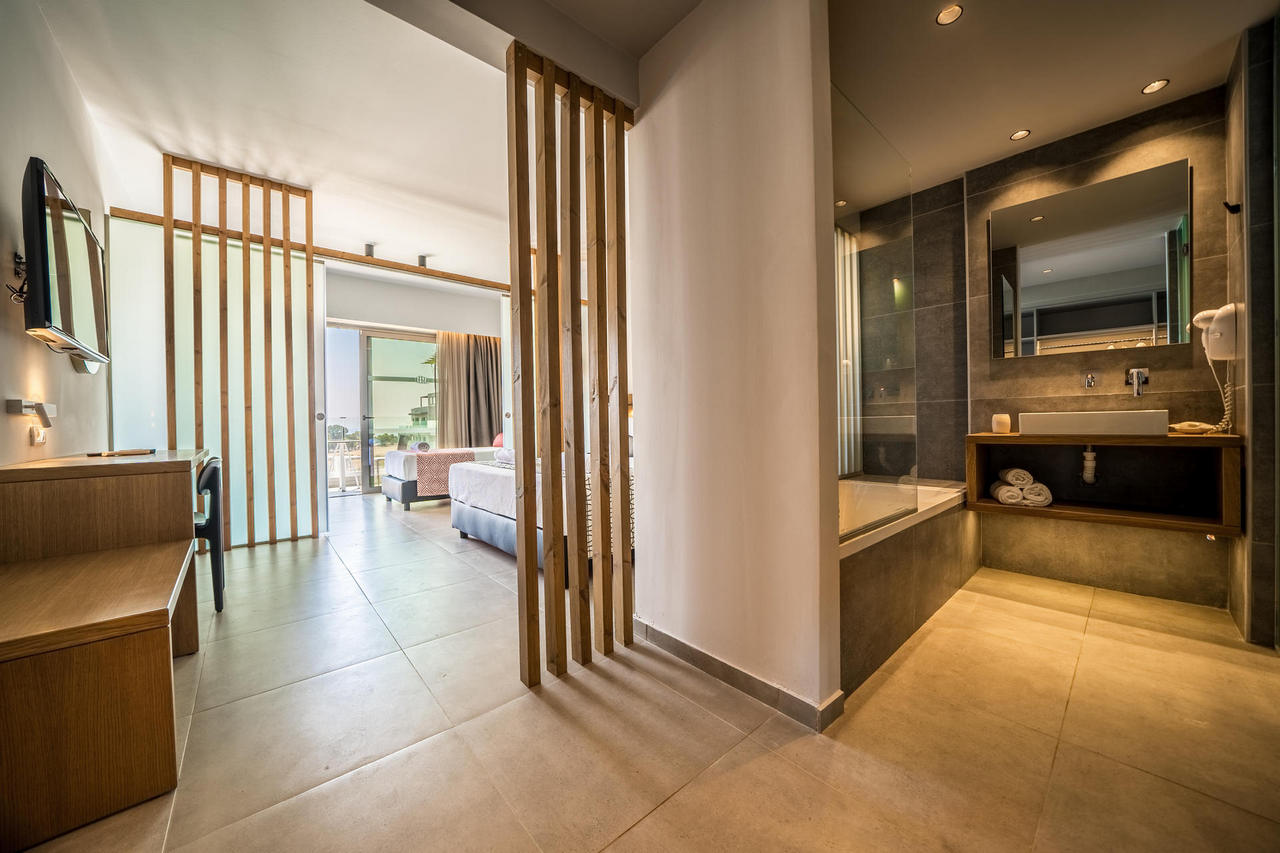 The combination of natural colours with materials such as wood and metal in the interior design of Harmony Crest rooms is offering the sense of discrete luxury to the resort guests.
