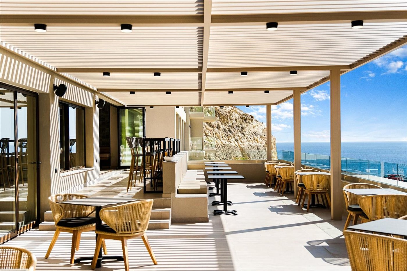Public areas, including the main restaurant, lounges, and outdoor pool terraces, are oriented to maximize sea vistas and create a cohesive experiential flow that encourages guests to engage with both dramatic views and tranquil courtyards. The landscape design further enhances this integration, using native plantings and stone hardscape to blur the boundaries between architecture and nature.